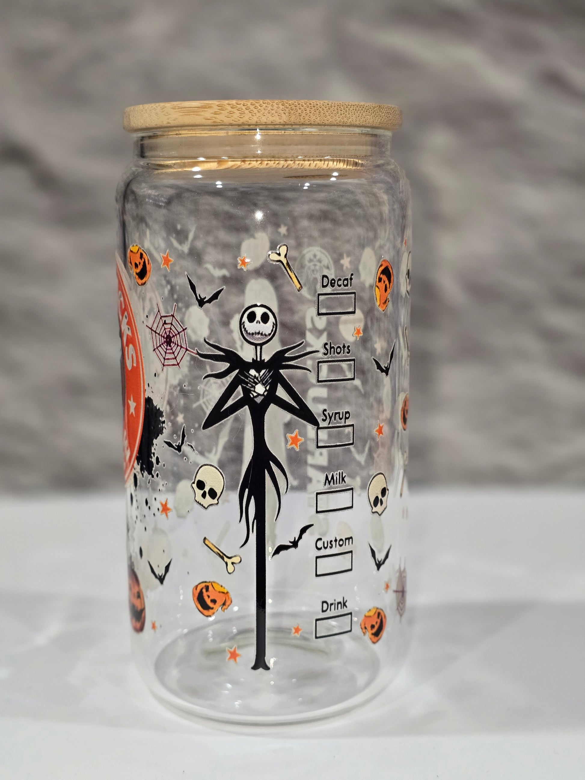 Indulge in your preferred iced coffee, tea, or seasonal beverage while making a bold statement with this 16oz Halloween glass cup.