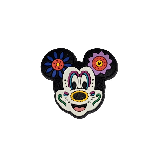 Made of a soft PVC material with a small round black plug on the back that makes attaching it to your Crocs or other like shoes a very easy process.