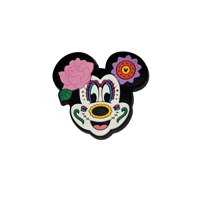Made of a soft PVC material with a small round black plug on the back that makes attaching it to your Crocs or other like shoes a very easy process.
