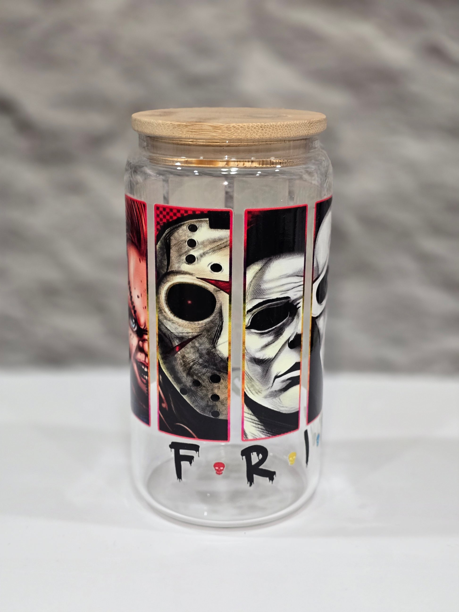 Indulge in your favorite spooky season drink with the Horror Friends 16oz cup! Whether it's iced coffee, tea, or any other beverage, this cup makes a bold statement.